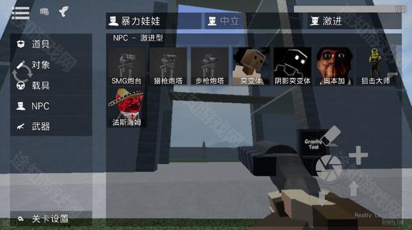 关闭背包后,你会自动装备工具枪,此时点击屏幕上的“+”号图标,即可将选定的NPC生成到当前场景中。