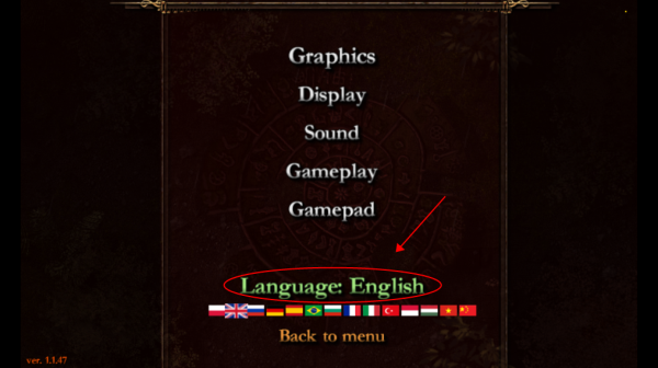 1、从本站下载并安装游戏后,进入主界面,找到“语言”选项,点击 language English 进行切换。