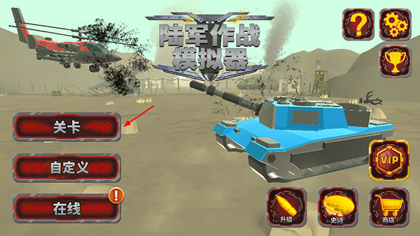 在对应平台下载并安装陆军战斗模拟器无限钻石版本,进入游戏后选择关卡模式开始你的征程;