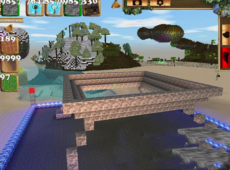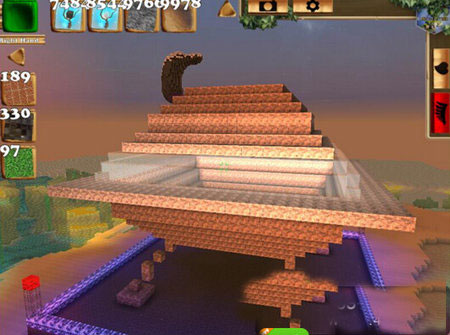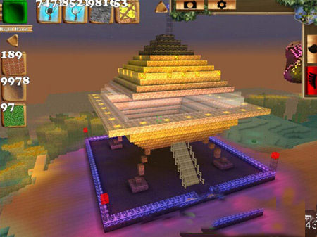2、在支柱顶端开始构建飞碟的底部结构,逐层向外扩展,形成底座。注意层数不宜过多,以免与支柱比例失调影响整体美观。