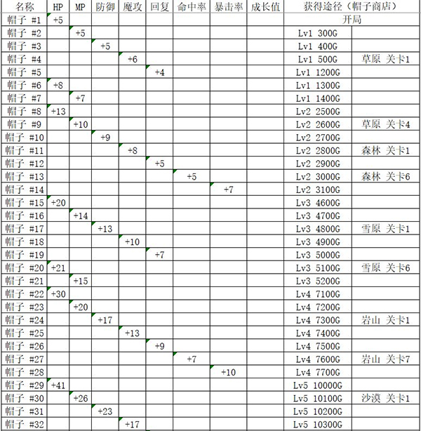 成长值从装备2级开始计算,可能存在轻微误差,并非所有装备均已完整统计(其中帽子的成长值较为特殊,其余装备则相对稳定)。成长值指装备每升一级所增加的对应属性数值。