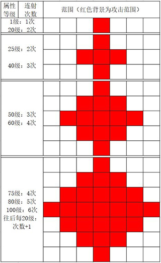 4、元素属性达到100级后,实际攻击距离将远超武器基础射程。例如武器射程为4,配合满级火属性可打击到射程7的位置,整体射程由“武器射程+元素属性加成”共同决定。