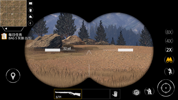 点击屏幕右侧的望远镜图标,可放大远处视野,便于观察动物动向或判断距离。
