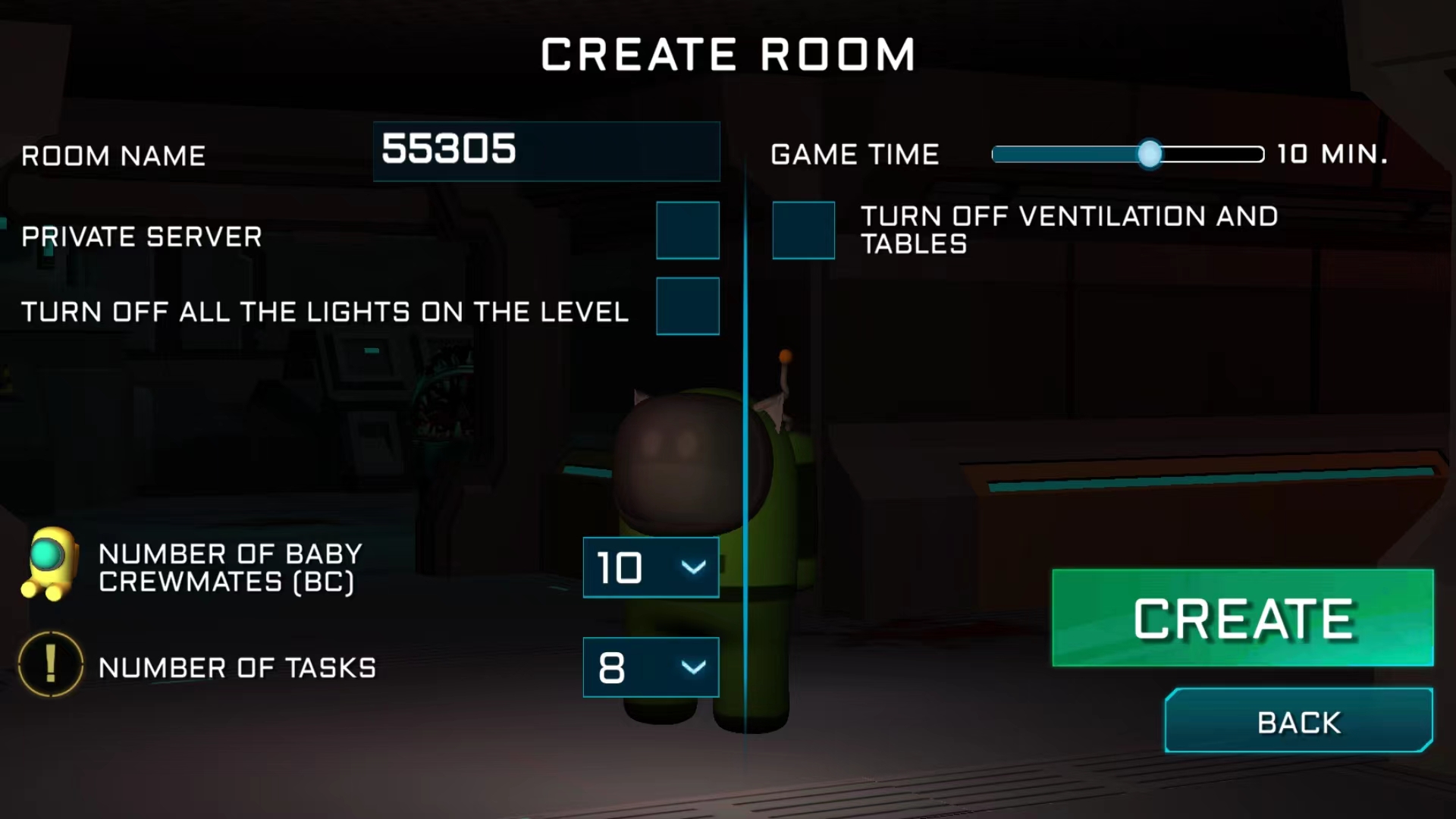7、设置好游戏难度、时长及参与人数等参数后,点击【CREATE】按钮即可创建房间并开始游戏。