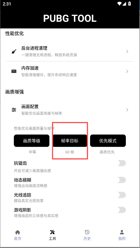 基础方案:点击“解锁/关闭画质帧率”按钮即可快速生效。