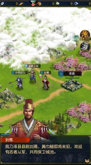 画面精美细腻,以三国历史为蓝本打造沉浸式策略战场,玩家将化身主公,完成一系列闯关挑战任务,在战火中不断壮大势力。