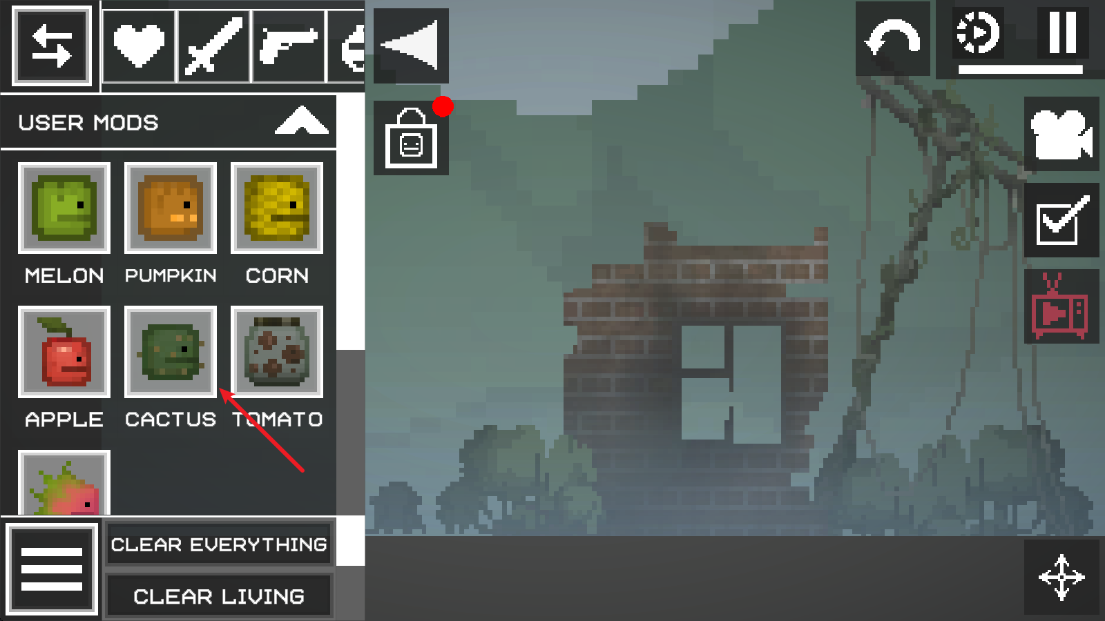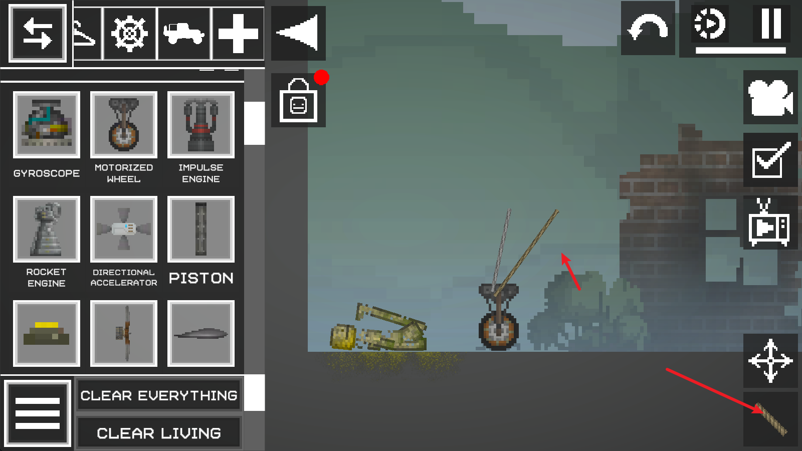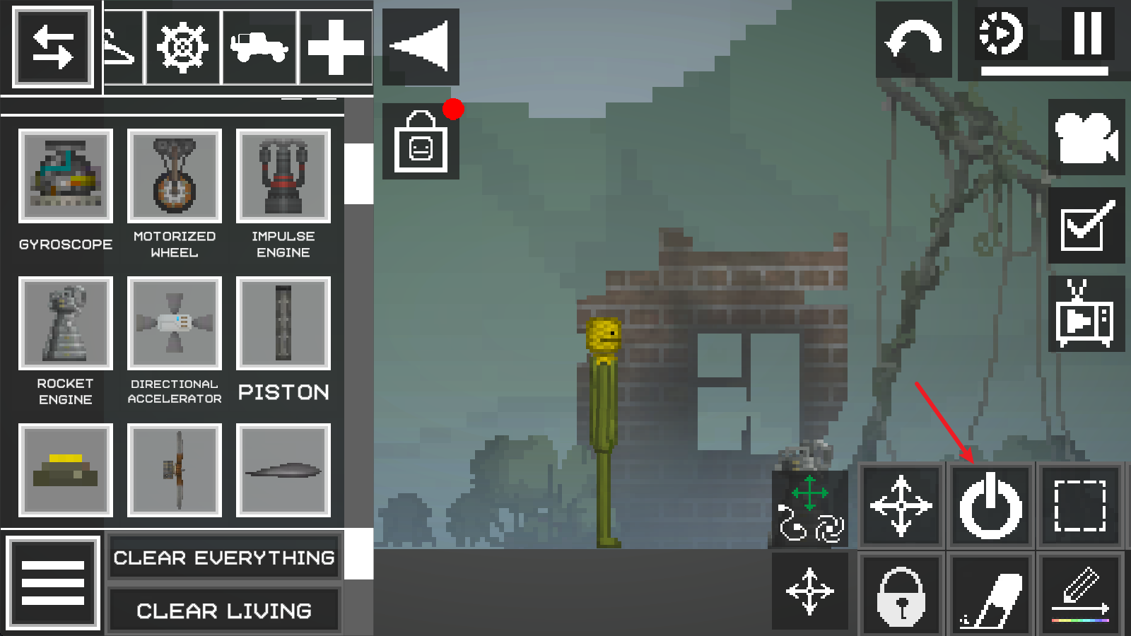 进入游戏界面后,点击左上角菜单按钮,在地面放置两个需要连接的物品;