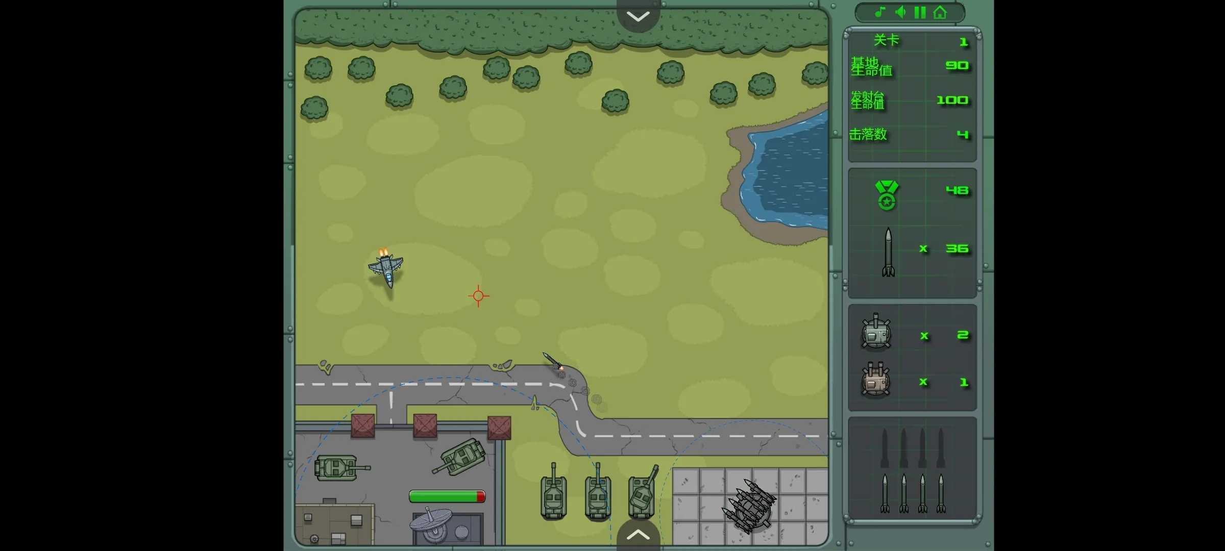 基地显示:游戏开始后,屏幕中央或显眼位置会显示我方军事基地,这是你必须全力守护的核心目标。一旦被敌机成功轰炸,游戏将宣告失败。
