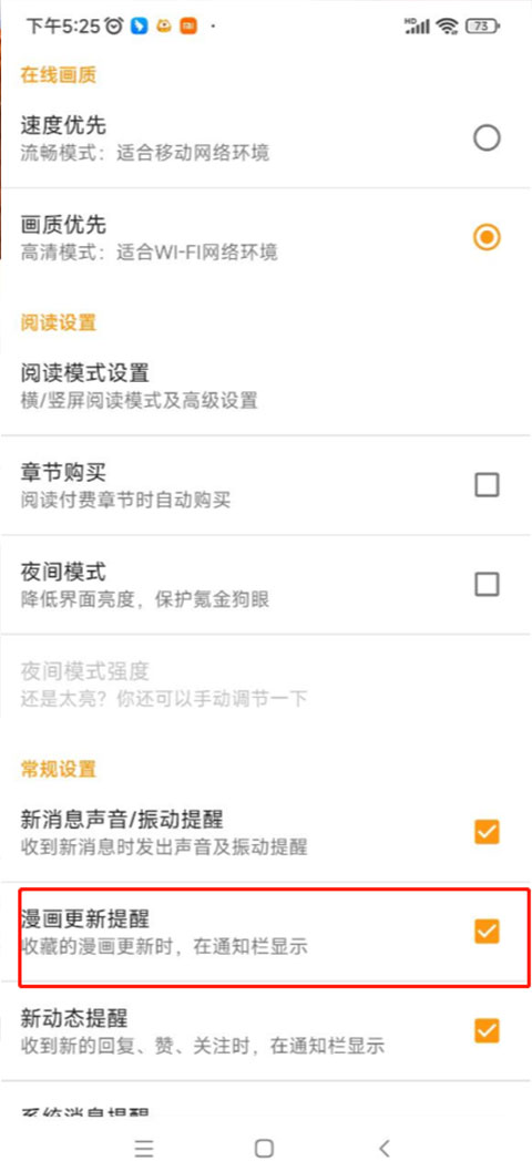 4、勾选【漫画更新提醒】选项,即可成功开启更新通知功能。