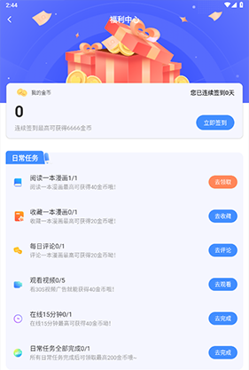2、通过每日签到、完成指定任务等方式持续积累金币,轻松解锁更多内容。