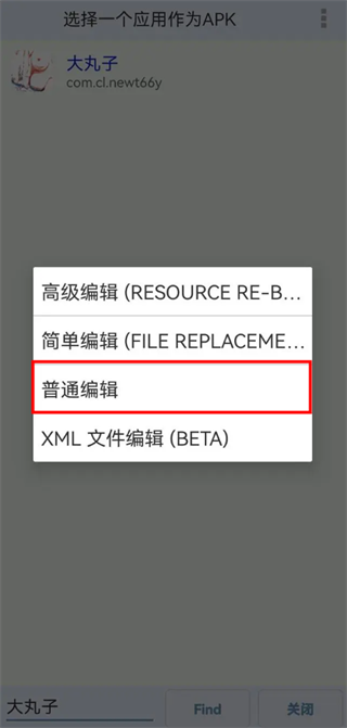2、在搜索框中输入你想修改的应用名称,例如“大丸子”,点击“find”后选中目标应用并打开;