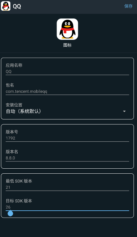 3、在此界面中,你可以自由修改应用图标、名称、包名等信息,确认无误后点击保存。