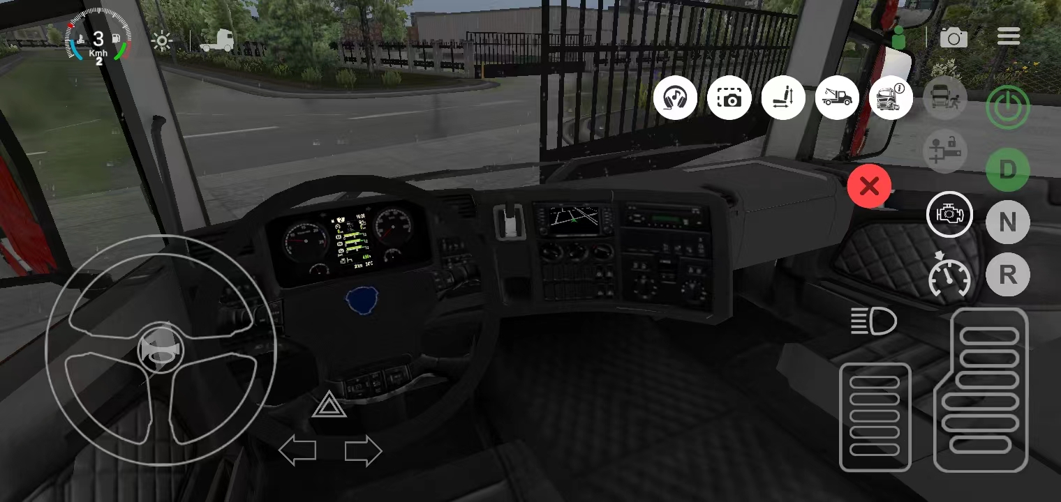 8、接着点击油门(旁边为刹车),配合方向盘控制方向,即可开始驾驶;
