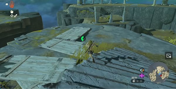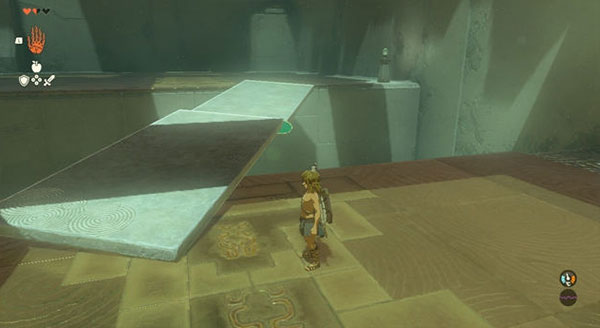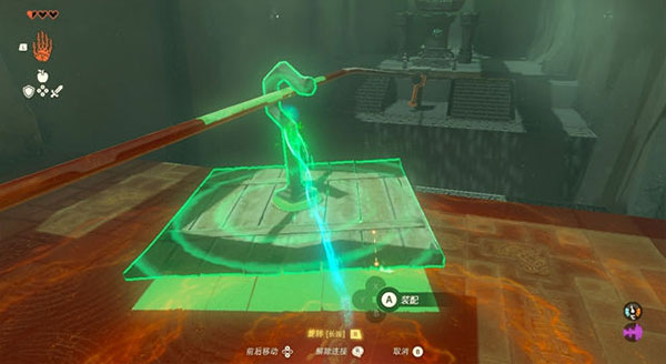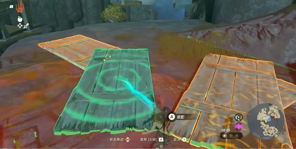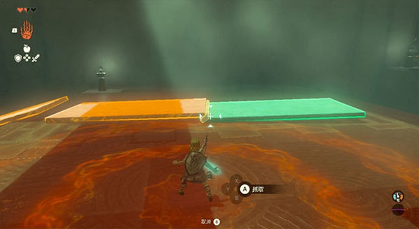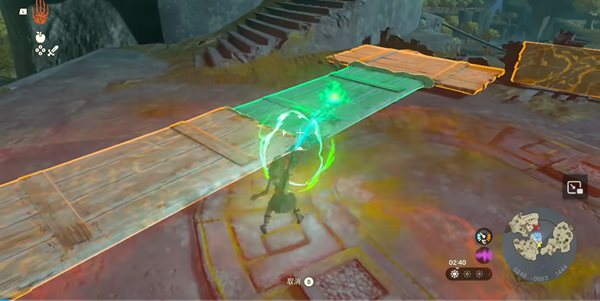 3、面对第一个障碍,玩家需激活究极手功能,按住R键将前方石板移动至断崖处并平稳放置,随后即可顺利通过。
