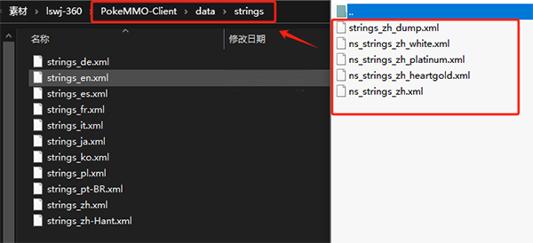 Windows 用户请将解压后的 XML 文件直接覆盖至游戏目录下的 ./data/strings 文件夹中。