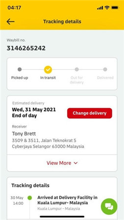 可实时查询并关注附近DHL网点的物流状态,当快件即将送达时,通过手机轻松选择指定服务点代收,提升收件灵活性。