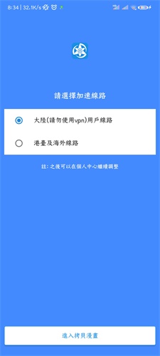 2. 进入首页,默认使用推荐线路。