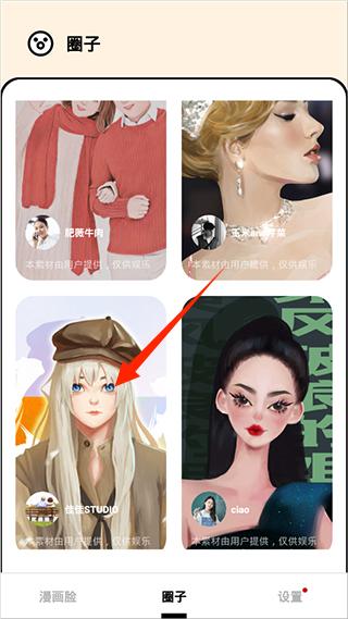 1、打开软件,在主界面点击“圈子”选项,进入创意社区。