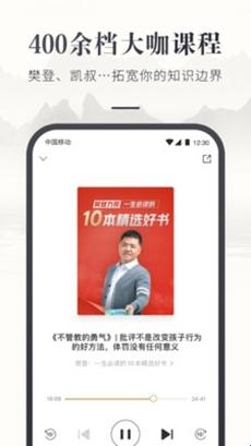 4. 大咖名师在线课程:提供400余档音视频课程,内容涵盖职场技能、人文通识、亲子教育等,助力深度学习与成长。
