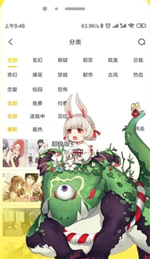 点击分类板块,可根据题材类型或连载状态精准筛选,轻松找到你想看的漫画。