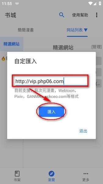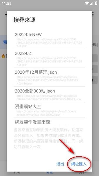 你也可以手动操作:点击右下角的“网址汇入”,粘贴漫画源链接后,点击“汇入”即可完成添加。
