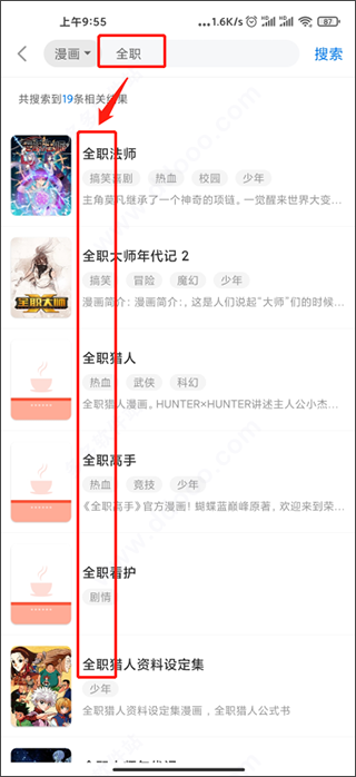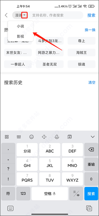 4、若已有心仪作品,可直接通过搜索栏输入漫画名称或作者名进行查找,不仅支持漫画检索,还能同步搜索小说、影视等相关内容;