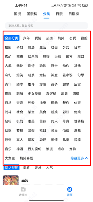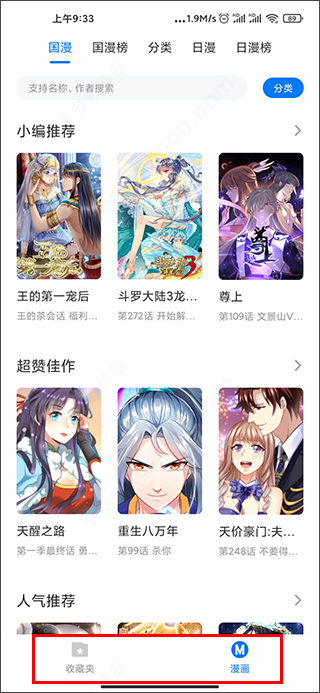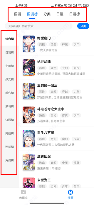 2、漫画内容按“国漫”“日漫”等大类清晰划分,同时贴心设置排行榜,帮助漫迷快速发现高人气佳作,告别书荒烦恼;